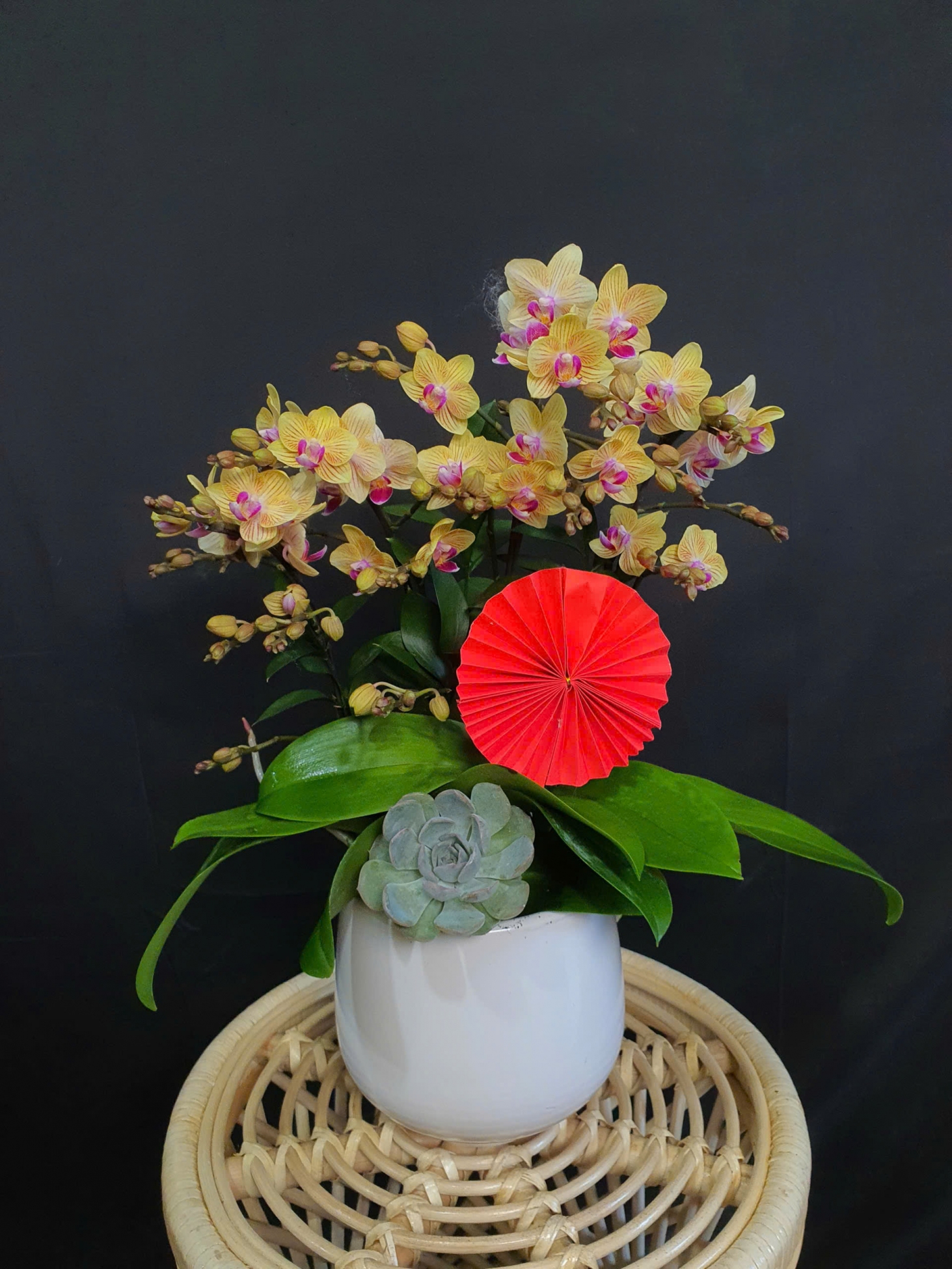 Mỗi nghệ nhân cắm hoa sẽ tạo ra các mẫu hoa khác nhau, không hoàn toàn giống nhau 100% và có độ tùy biến đôi chút, hoalantacpham.com cam kết đảm bảo tầm 90%-95% như mẫu cho quý khách hàng (100% sản phẩm hoa lan từ người dân làng hoa Lâm Đồng)