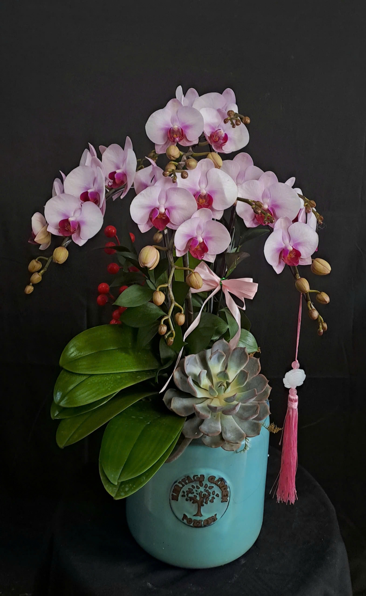 Mỗi nghệ nhân cắm hoa sẽ tạo ra các mẫu hoa khác nhau, không hoàn toàn giống nhau 100% và có độ tùy biến đôi chút, hoalantacpham.com cam kết đảm bảo tầm 90%-95% như mẫu cho quý khách hàng (100% sản phẩm hoa lan từ người dân làng hoa Lâm Đồng)