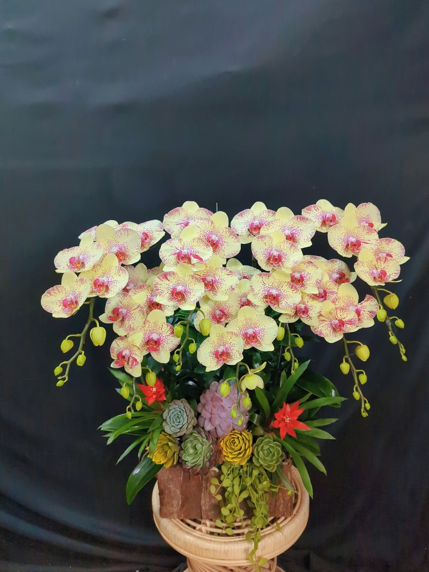 Mỗi nghệ nhân cắm hoa sẽ tạo ra các mẫu hoa khác nhau, không hoàn toàn giống nhau 100% và có độ tùy biến đôi chút, hoalantacpham.com cam kết đảm bảo tầm 90%-95% như mẫu cho quý khách hàng (100% sản phẩm hoa lan từ người dân làng hoa Lâm Đồng).