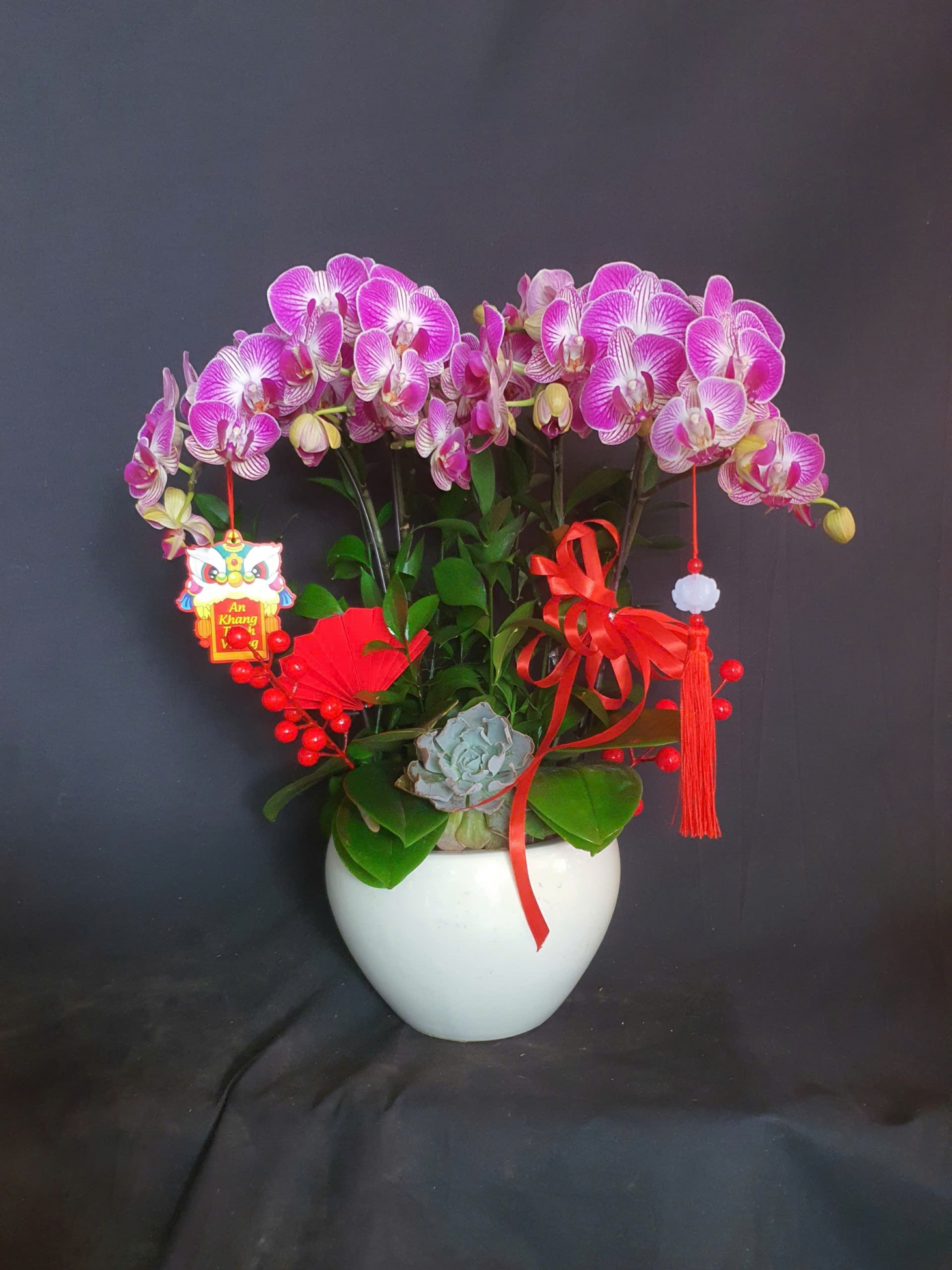 Mỗi nghệ nhân cắm hoa sẽ tạo ra các mẫu hoa khác nhau, không hoàn toàn giống nhau 100% và có độ tùy biến đôi chút, hoalantacpham.com cam kết đảm bảo tầm 90%-95% như mẫu cho quý khách hàng (100% sản phẩm hoa lan từ người dân làng hoa Lâm Đồng)