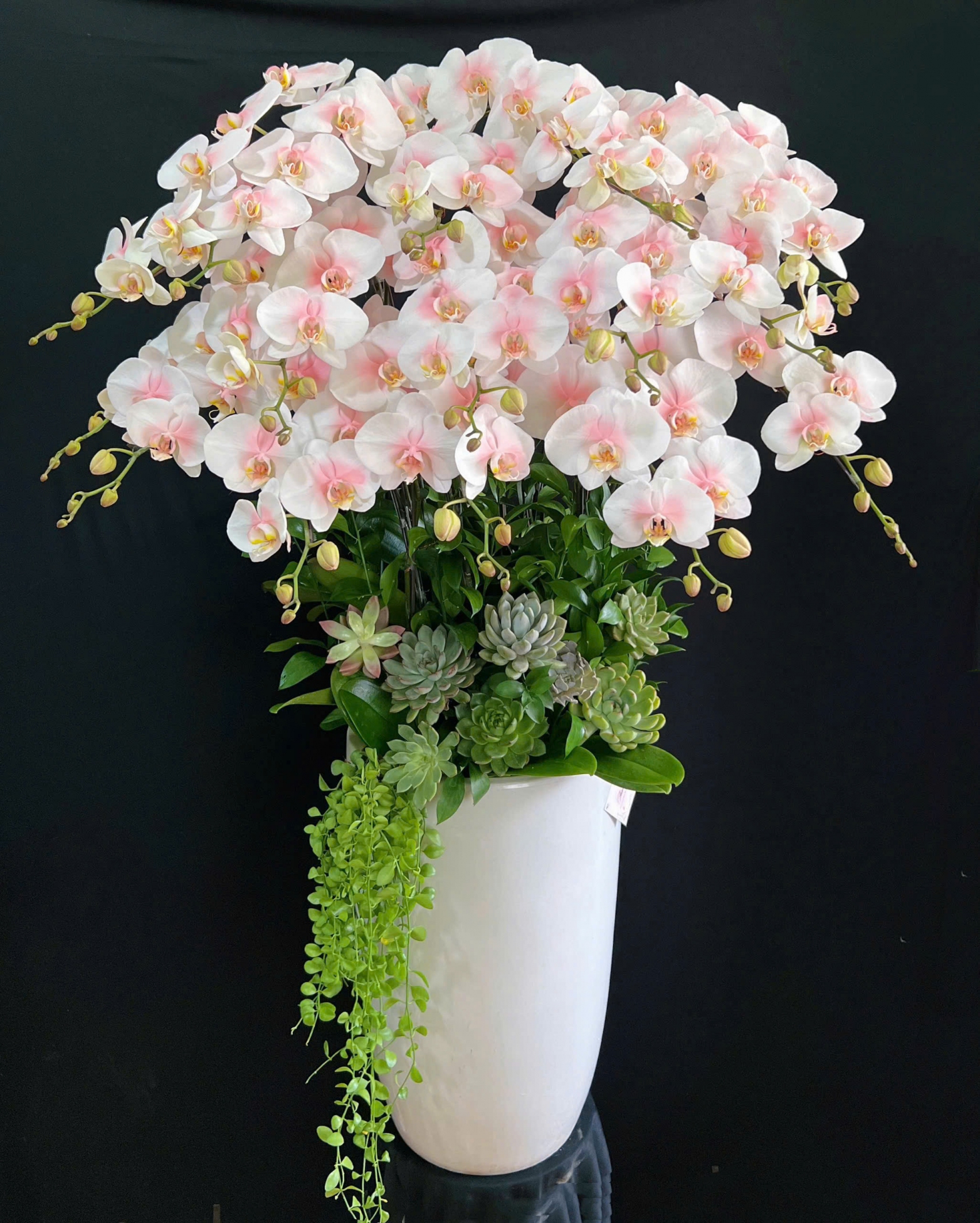 Mỗi nghệ nhân cắm hoa sẽ tạo ra các mẫu hoa khác nhau, không hoàn toàn giống nhau 100% và có độ tùy biến đôi chút, hoalantacpham.com cam kết đảm bảo tầm 90%-95% như mẫu cho quý khách hàng (100% sản phẩm hoa lan từ người dân làng hoa Lâm Đồng)