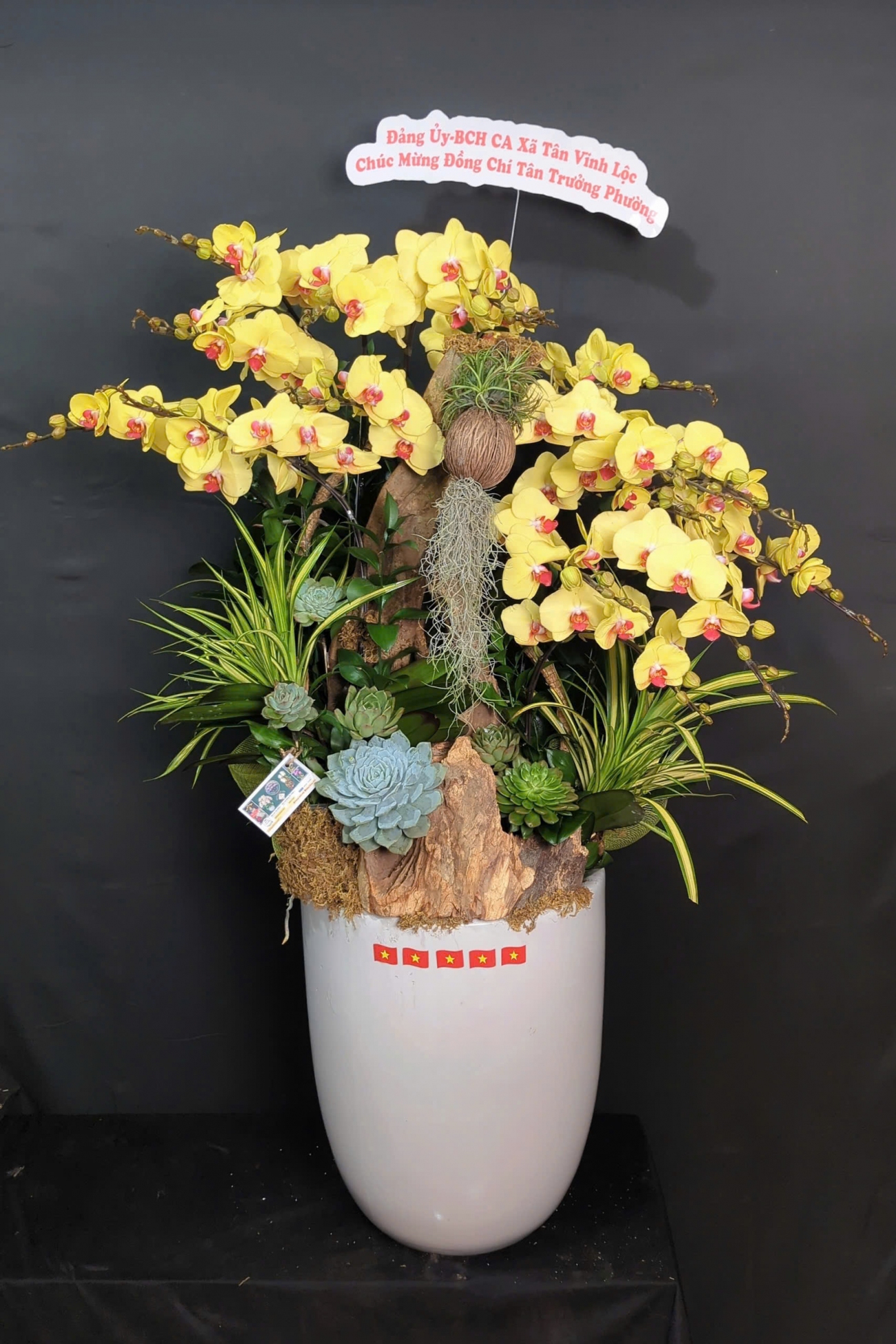 Mỗi nghệ nhân cắm hoa sẽ tạo ra các mẫu hoa khác nhau, không hoàn toàn giống nhau 100% và có độ tùy biến đôi chút, hoalantacpham.com cam kết đảm bảo tầm 90%-95% như mẫu cho quý khách hàng (100% sản phẩm hoa lan từ người dân làng hoa Lâm Đồng)